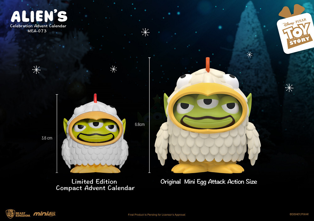 《玩具總動員》裡最會”裝扮”的外星人 『三眼怪』陪你一起倒數迎接一年一度最幸福的聖誕節;為了期待 12 月的第 25天到來,最愛搞怪的三眼怪將變裝成各個皮克斯角色躲藏在不同的門後,等你一一揭曉!隨著聖誕節一天天的倒數,每天都能獲得一個三眼小禮物及配件,讓你驚喜連連、天天都有小確幸♡