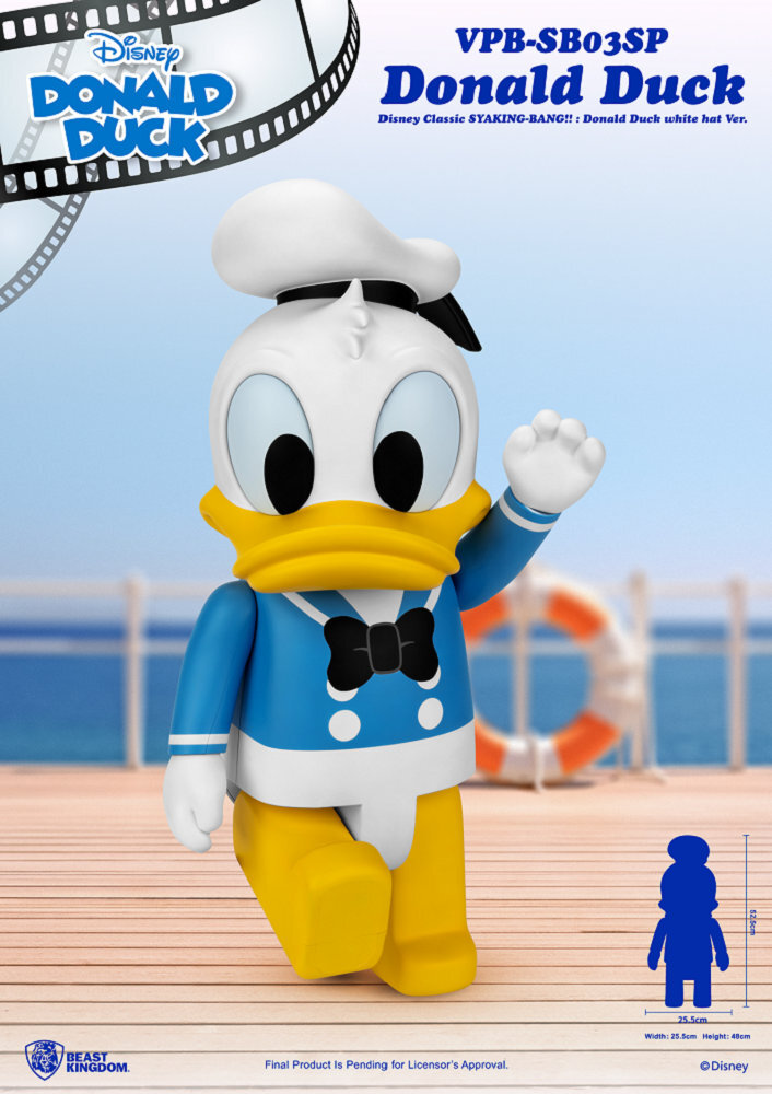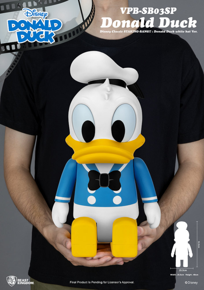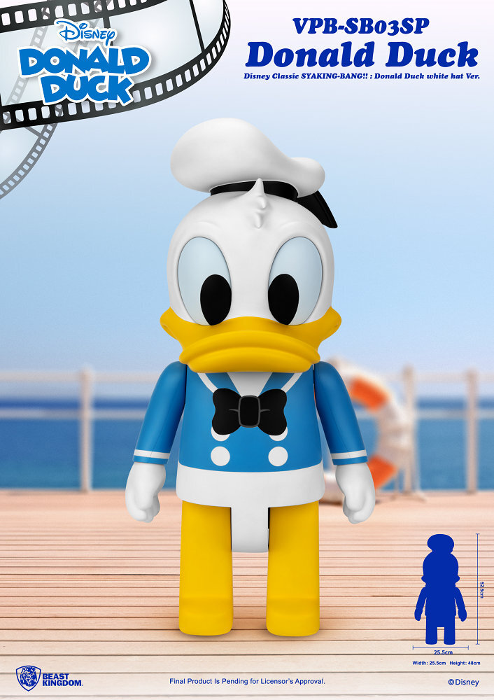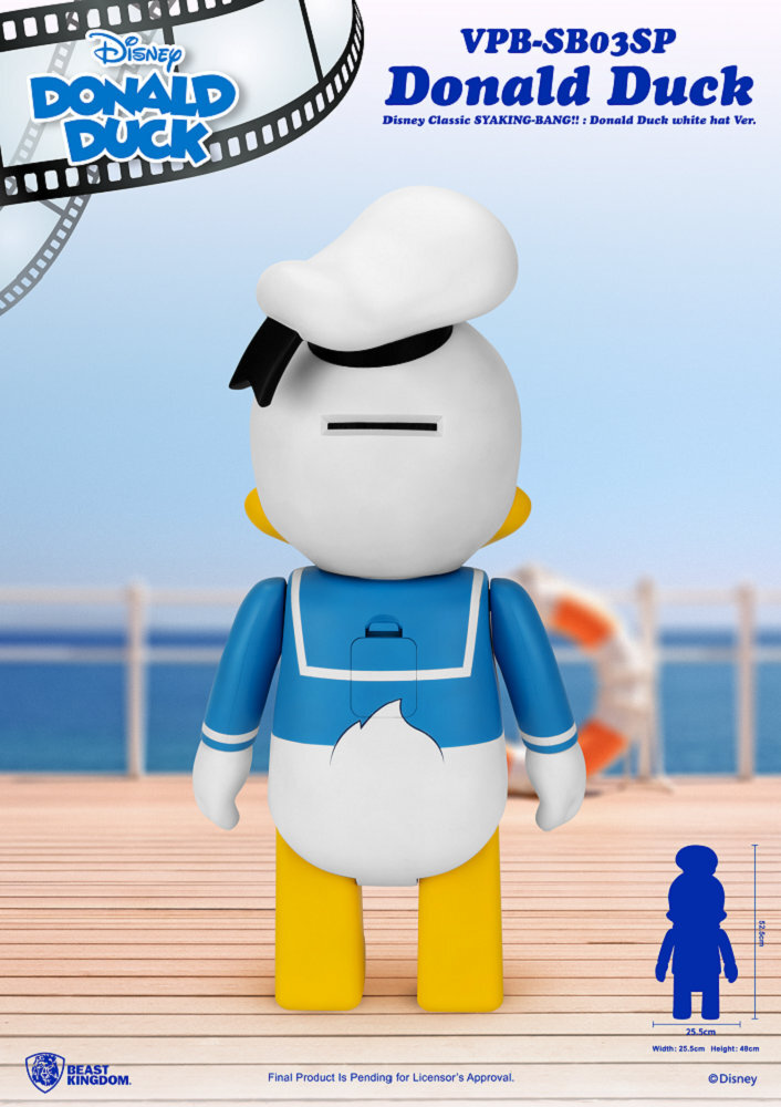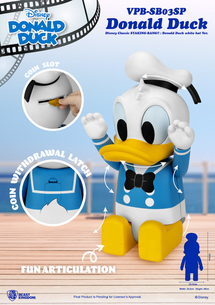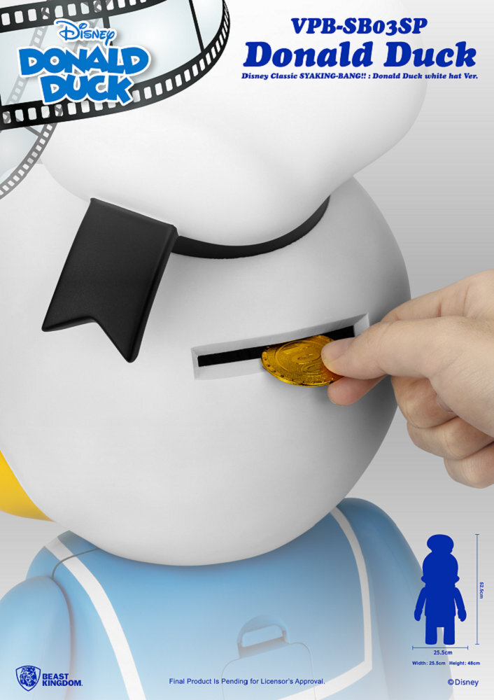 講話口齒不清的唐老鴨來了!穿上經典的水藍色水手服、還有不可少的圓鼓鼓水手帽,搭配嘟嘟嘴的樣子真低可愛,背後還有唐老鴨最可愛的屁屁毛;以原本的動畫外型獨創出SYAKING-BANG!!存錢筒的造型,不只可以自由擺動出想要的姿勢與動作,更是讓粉獅們收集到宇宙不同的唐老鴨周邊,除了一般款式之外,還有機會獲得超級限量的黑色水手服版本!可遇不可求的獨家配色,今天起就讓唐老鴨跟著你邊走邊存,朝史高志叔叔邁進!