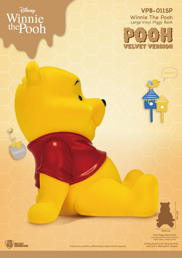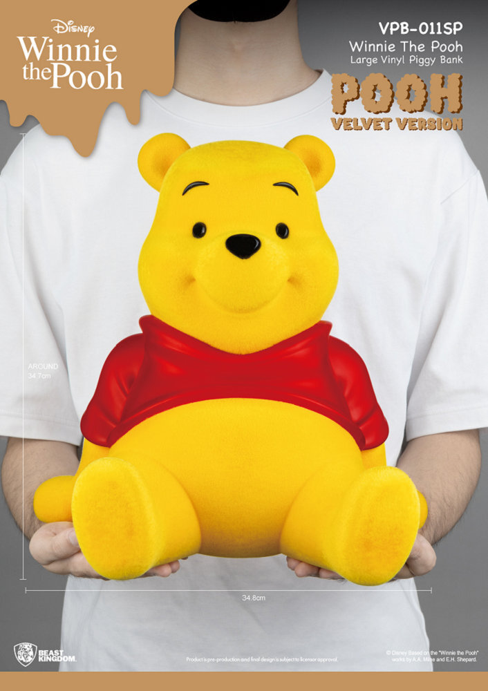 限定特別版帶來植絨材質的造型,更加還原維尼毛絨絨的蓬鬆感,除了當存錢筒,放在家中成為最萌的擺飾也適合,喜愛維尼的粉絲們,趕緊將他抱回家~