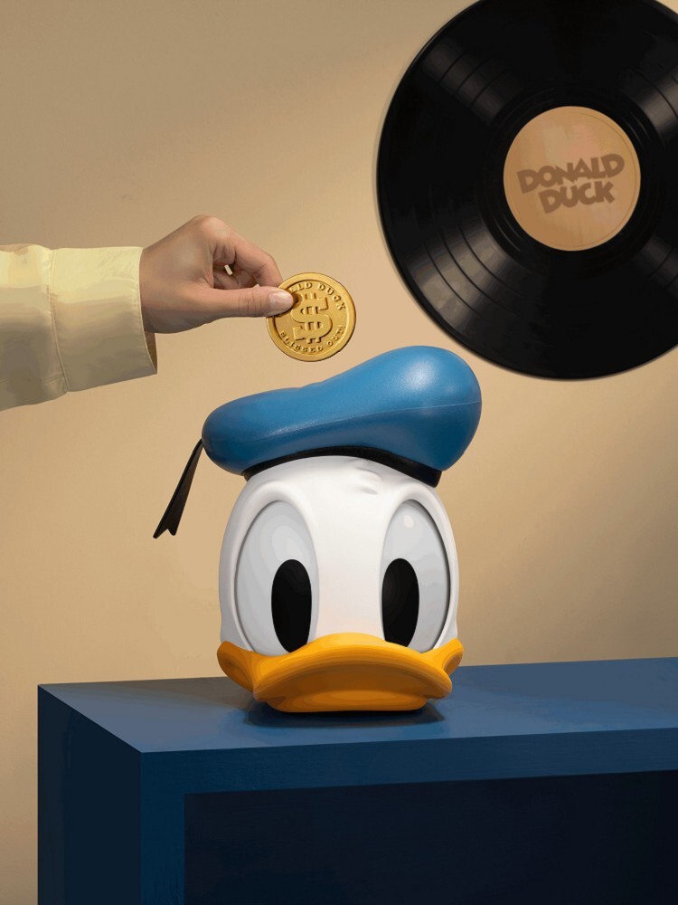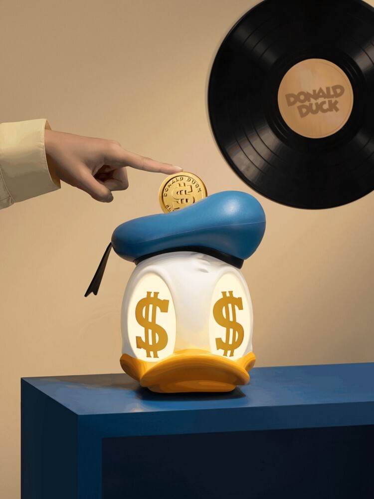 見錢眼開: 酷炫的金幣造型開關,輕輕一壓,唐老鴨雙眼立刻閃爍「$$」發出閃閃金光!